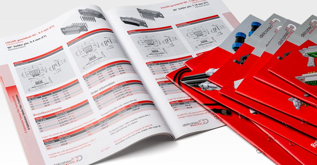 Deltron AG D-Sub Qualitätsstecker Made in Switzerland, Kirchberg. Die Produkte-Kataloge der Deltron AG weisen einen Umfang zwischen 32 und 80 Seiten A4 auf. Unsere Aufgabe besteht darin, diese Kataloge nach einem Standard-Layout zu produzieren, Grafiken und Bilder zu bearbeiten und die Titelseiten individuell zu gestalten. Wir organisieren den Druck und sorgen für eine termingerechte Auslieferung.